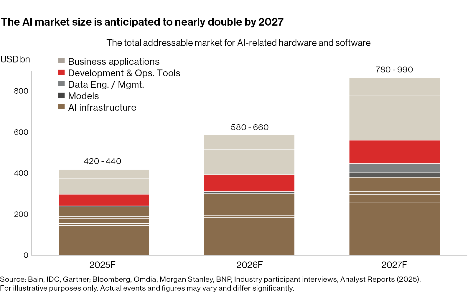 AI represents one of the most significant commercial opportunities for long-term investors. The total addressable market for Generative AI is projected to nearly double by 2027, approaching USD 1 trillion.