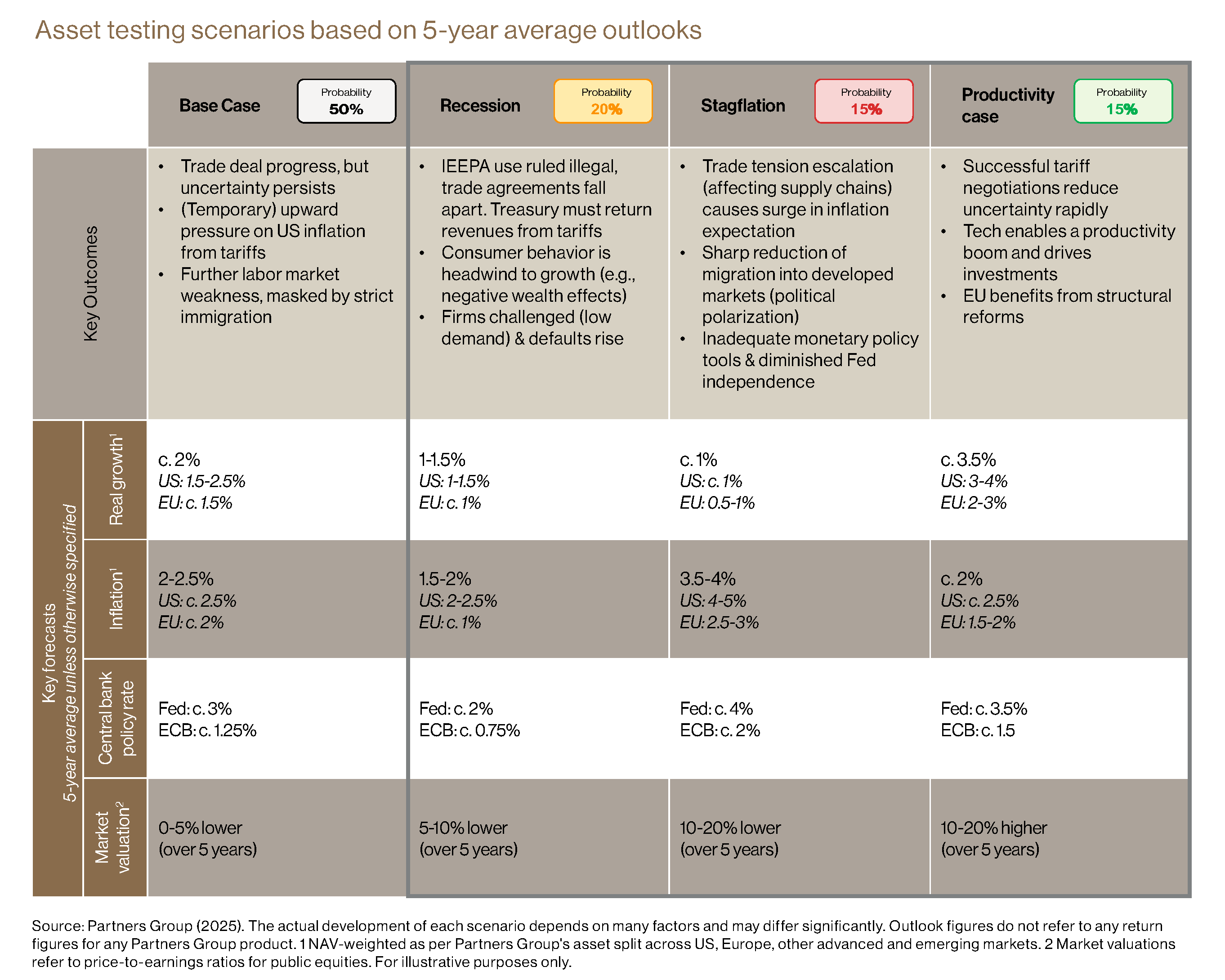 Stress-Test for Disruption – The complexity of near- and long-term outlooks underscores the importance of scenario analysis in underwriting. While our base case assumes continued growth and inflation normalization, we rigorously test for recession, stagflation, and productivity-boost scenarios.