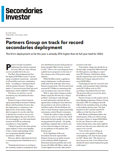 Secondaries Investor: ‘Partners Group on track for record secondaries deployment’