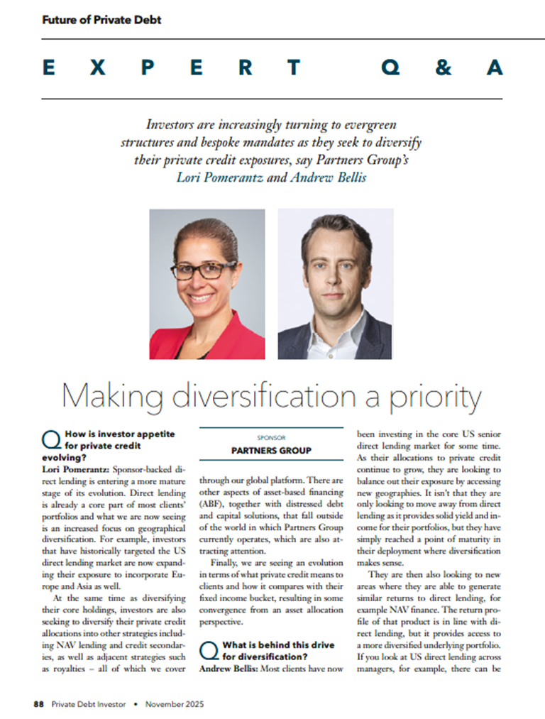 Many investors have reached a point of maturity in their private credit deployment where more diversification makes sense, Lori Pomerantz and Andrew Bellis told Private Debt Investor. This might mean adding strategies such as NAV lending and credit secondaries to existing direct lending allocations. In this keynote interview, Lori and Andrew also talk about how investors are consolidating with a smaller number of managers, the role evergreens and mandates can play in supporting diversification, and why demand for credit will continue to grow.